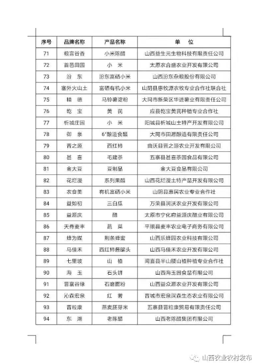 附件:擬入選2021年山西特優(yōu)農(nóng)產(chǎn)品品牌目錄庫名單