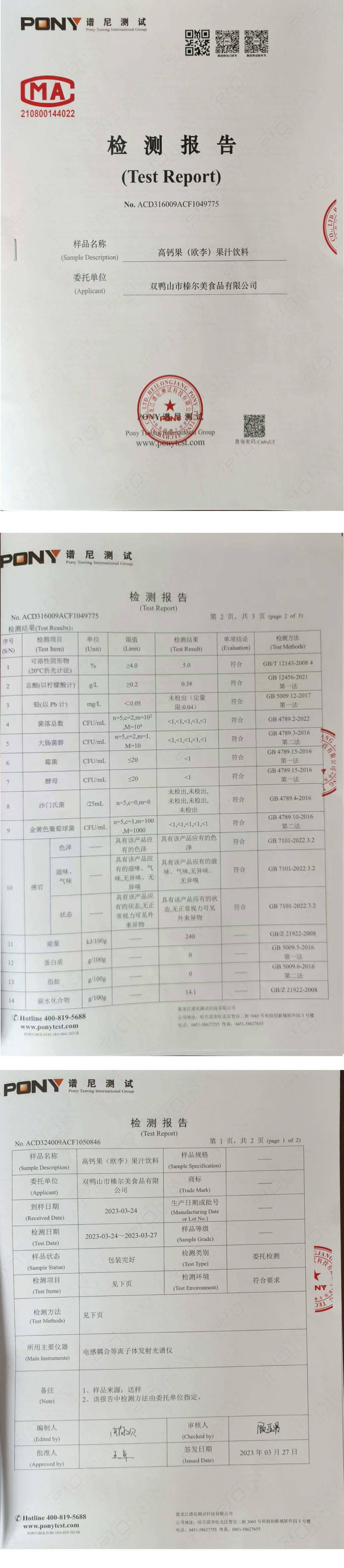 高 鈣 果檢測(cè)報(bào)告